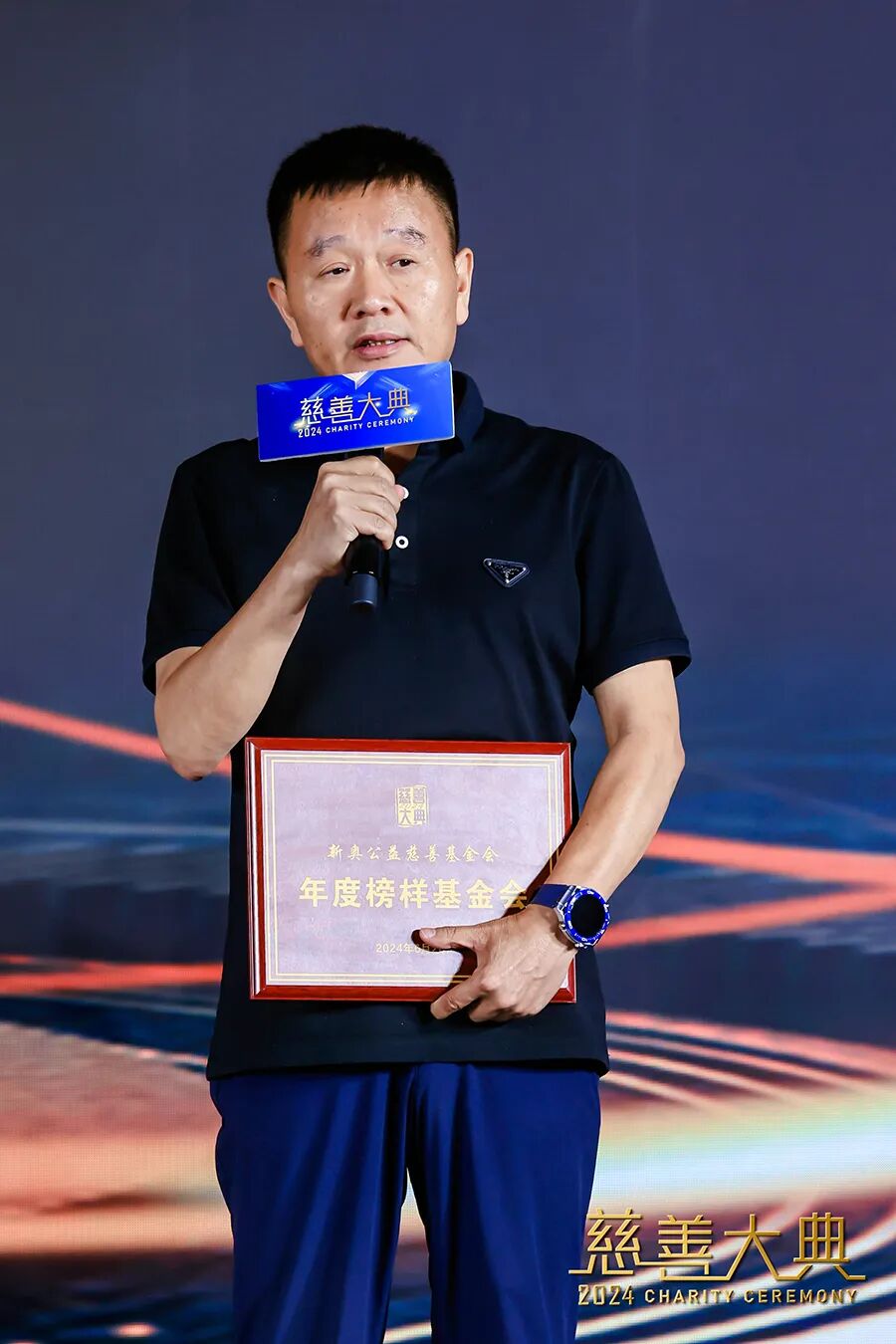 上台领取“年度榜样基金会”奖牌